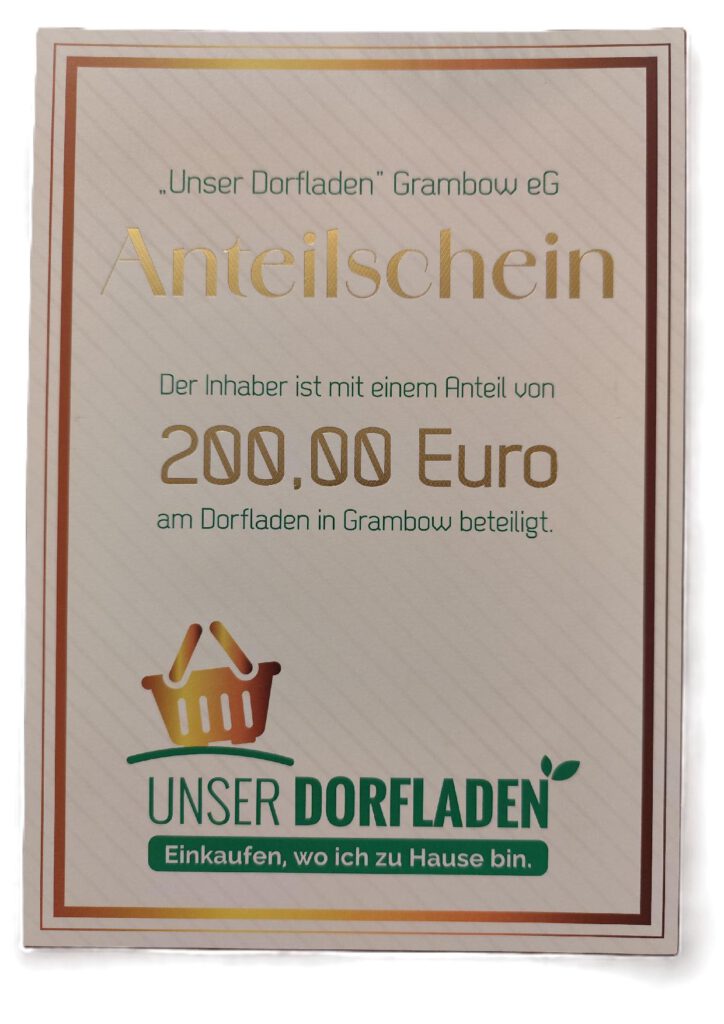 Genossenschaftsanteile Beitrittserklärung Bei Eintritt in die Genossenschaft erhalten Sie eine hochwertige mit Gold geprägte Urkunde.